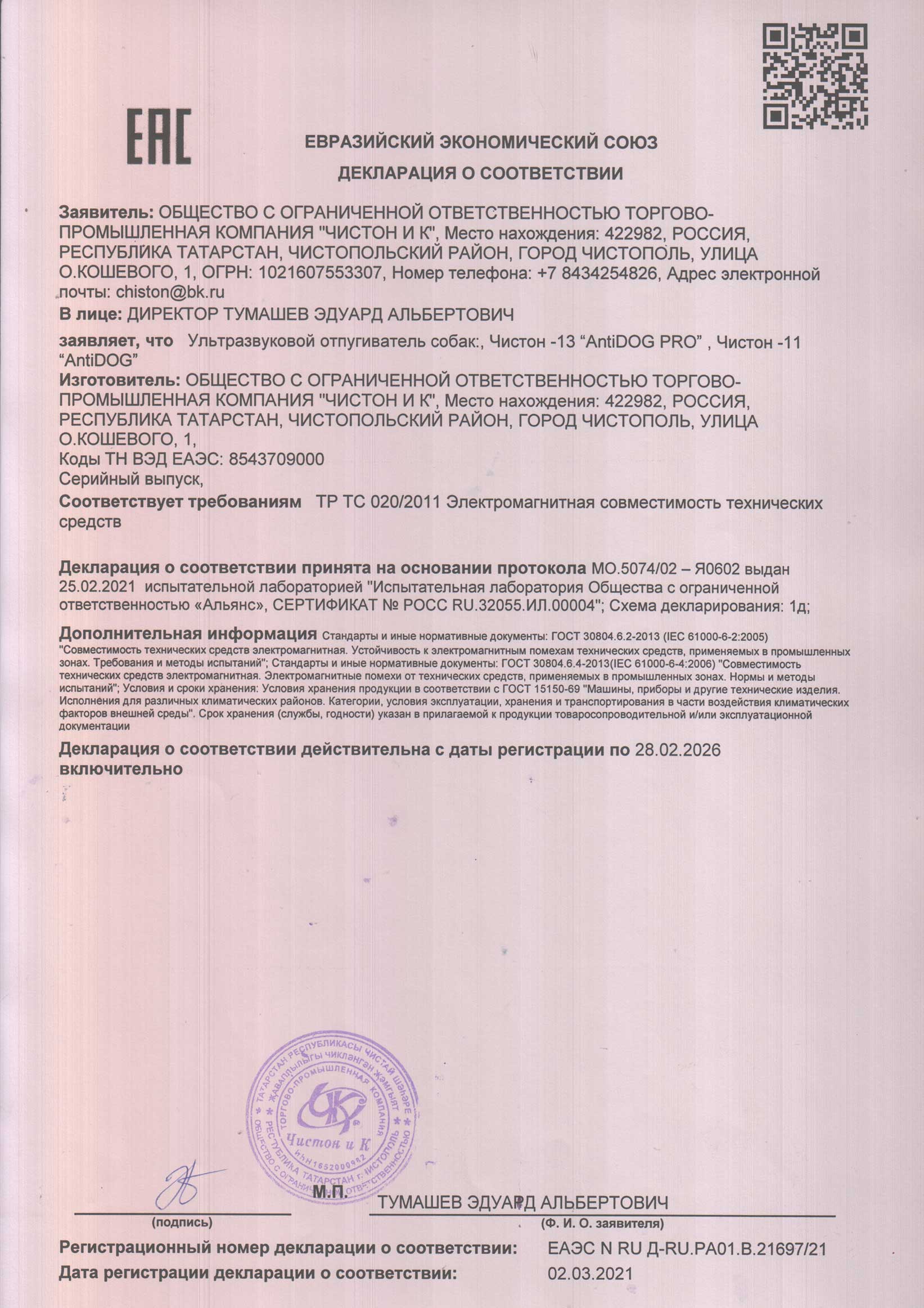 Отпугиватель собак "Чистон-13 AntiDogPro"